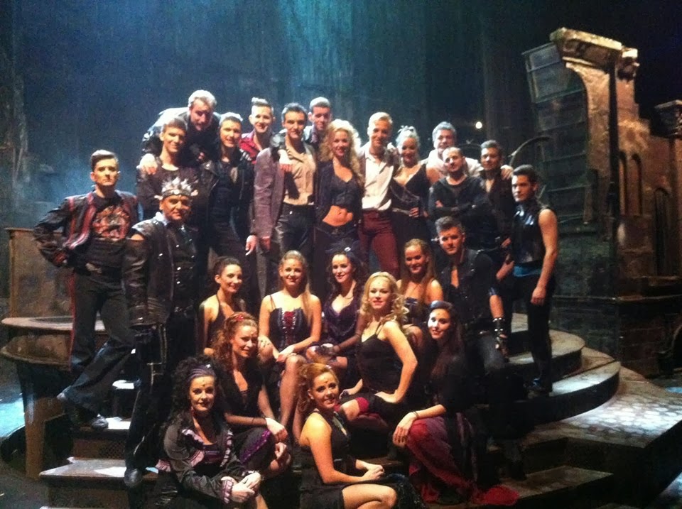 És szintén ami Ensemble.. Péter. Nem tudom ki ismeri a szerepet, nekem fontos, mint Sárkány Zsoltiért rajongó, és hát már a premieren is ő alakította Pétert, azaz a Dada inasát, akit talán többen onnan tudhatnak, hogy a Hahaha dal előtt tőle kéri el a Dajka a legyezőt ;) Nade mivel most Zsolti, avagy ahogy többen ismerik Süsü a második felvonásban volt csak,így nyilván Pétert is más játszotta. Reménykedtem benne, hogy Blénesi Zsolti fogja, aki akkor viszi ezt a szerepet,ha az Ensemble épp külföldön turnézik,nade közben egy új tánccsapatot próbálnak összekovácsolni mostanság, így ezt a szerepet ma Szentirmai Zsolt ~ "Szenti" játszotta. Okés, lehetett tudni,de azért picit csalódott voltam,mert hát annak ellenére, hogy tényleg szinte naponta ott vagyok A színháznál, még így se láttam már rég ezt a darabot,s most,hogy élvezhettem volna kicsit,hát ez se így jött össze. De hát a második felvonásban így legalább egyszerre láthattam Süst és Zolit színpadon,ez meg most mindennel felért! :) Sőt, amikor Zoli..khm Mercutio leszúrta magát,akkor ott majdnem neki is szaladt Süsnek, szóval ha ez egy fotó lett volna,akkor egy képkockán lettek volna :P