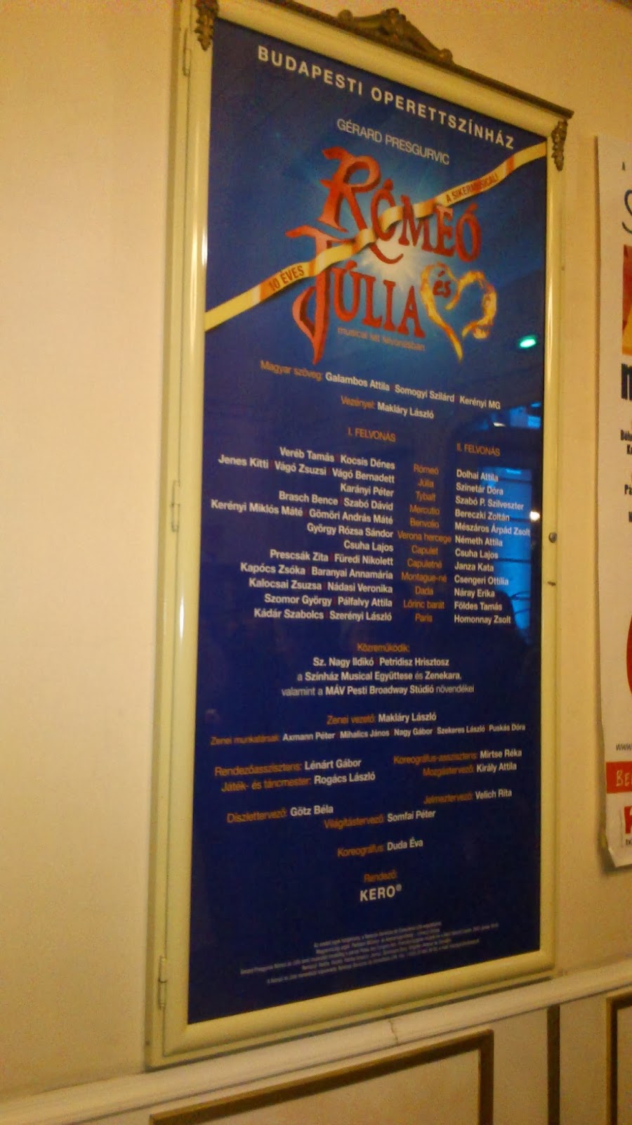 Najó,amikor ezen a sokkon túltettem magam, hát igazából felgyorsultak az események. A mozdulatok tényleg mind olyanok voltak,mint a 2005-ben megjelent DVD-n, a hangjuk is hibátlan volt, ahogy az a nagykönyvben meg volt írva, s a közönség is velük élt. Ahogy levonultak,s fellépett Szabó P Szilveszter, megintcsak mindenki kedvence, mint Tybalt, hát újabb sikítások és éljenzések,ahogy Janza Katónál is rögtön,s ahogy mindegyik újonnan belépett színésznél.